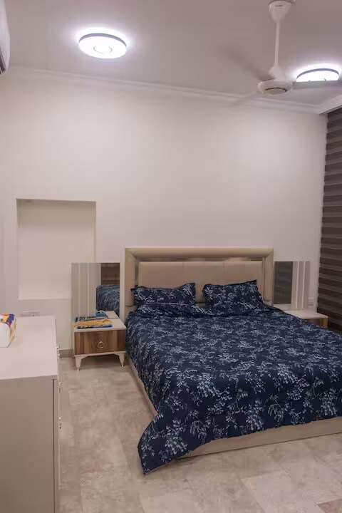 Njut av en bekväm vistelse i hjärtat av Bagdads exklusiva Yarmouk-distrikt! Vår moderna lägenhet har 3 rymliga sovrum, inklusive ett sovrum med eget badrum, ett stort vardagsrum perfekt för avkoppling och ett fullt utrustat öppet kök i amerikansk stil. Lägenhetens design blandar komfort och elegans, vilket ger en oförglömlig upplevelse för både familjevistelser och affärsresenärer.