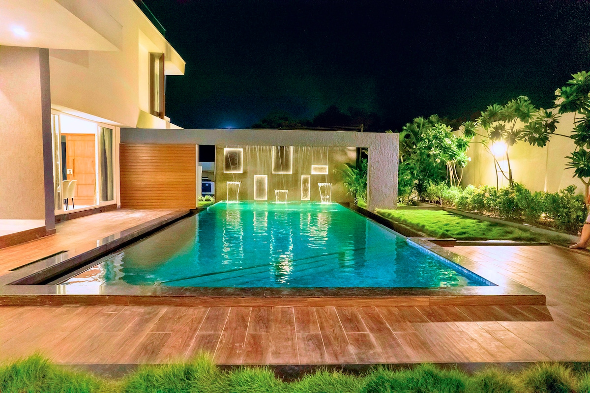 En lyxig och rymlig helt exklusiv villa med 3 sovrum med egen privat pool och underhållning som miniteater, PS5, grillplats och brädspel, perfekt för både familjer och barn kan njuta av lyxen i vår pool i fullständig integritet och vi erbjuder en mängd välskötta poolleksaker tillgängliga. Området har matleveransagenter som Swiggy och Zomato och direkt restaurangleverans på beställningsbasis. - Övervakningskamera finns utanför huset för säkerheten. - Privat parkering.