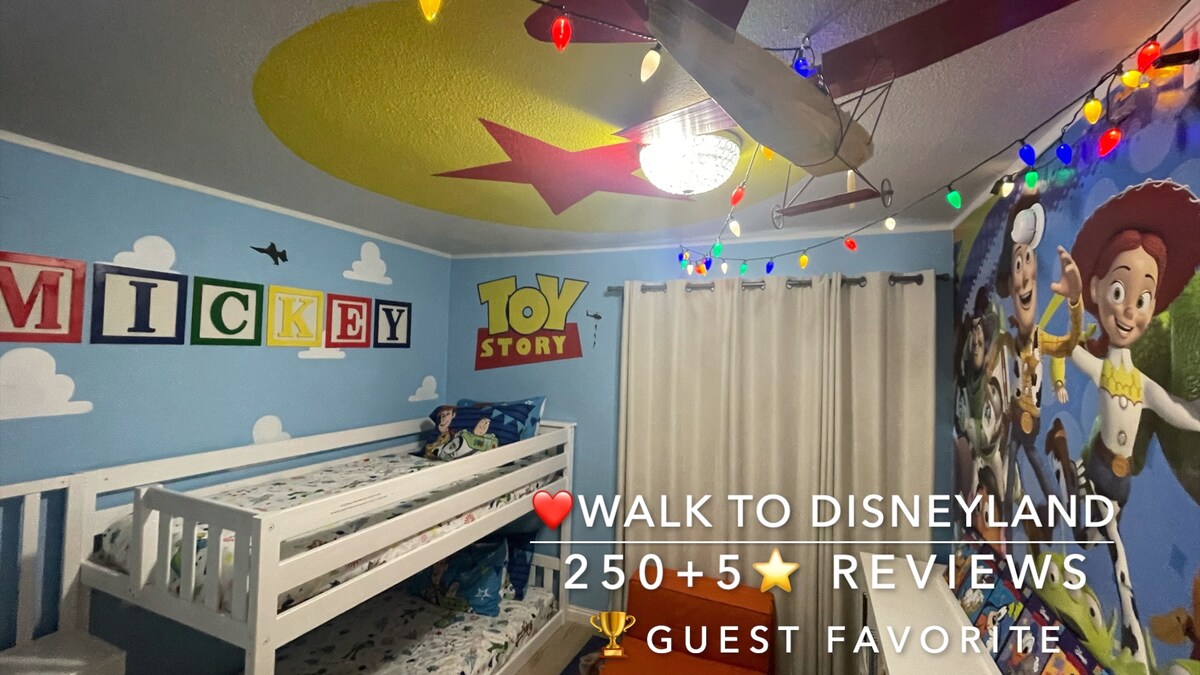Walk to Disneyland from this Disney-vibe Anaheim vacation rental! Enjoy a Toy Story—themed kids’ room, Nintendo games, and a kid-friendly book collection. Stay comfortable with fast WiFi, A/C, POOL, SPA, full kitchen, and free parking. Relax at the resort Anaheim condo near Disney, family-friendly Anaheim Airbnb Short-term rental stay steps from Disneyland, Downtown Disney, and the Convention Center—your perfect Anaheim Disneyland vacation rental! Your Family-friendly Anaheim rental awaits!