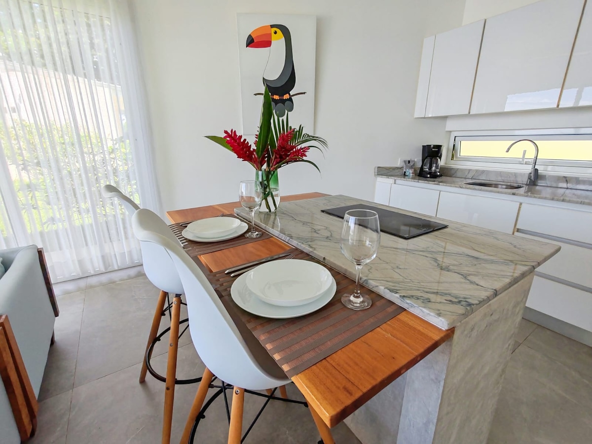 Detta boende med två sovrum ligger bara 600 meter från den orörda Playa Organos-stranden och erbjuder den perfekta blandningen av komfort och äventyr. Inom kort avstånd kan du njuta av att sola på Playa Organos, förundras över bioluminescerande kvällsturer, koppla av på de fantastiska stränderna i Isla Tortuga, eller utforska de olika djur- och vandringslederna på Curu Wildlife Refuge. 4x4 är inte obligatoriskt, men det kan hjälpa till att navigera några av vägarna under regnperioden