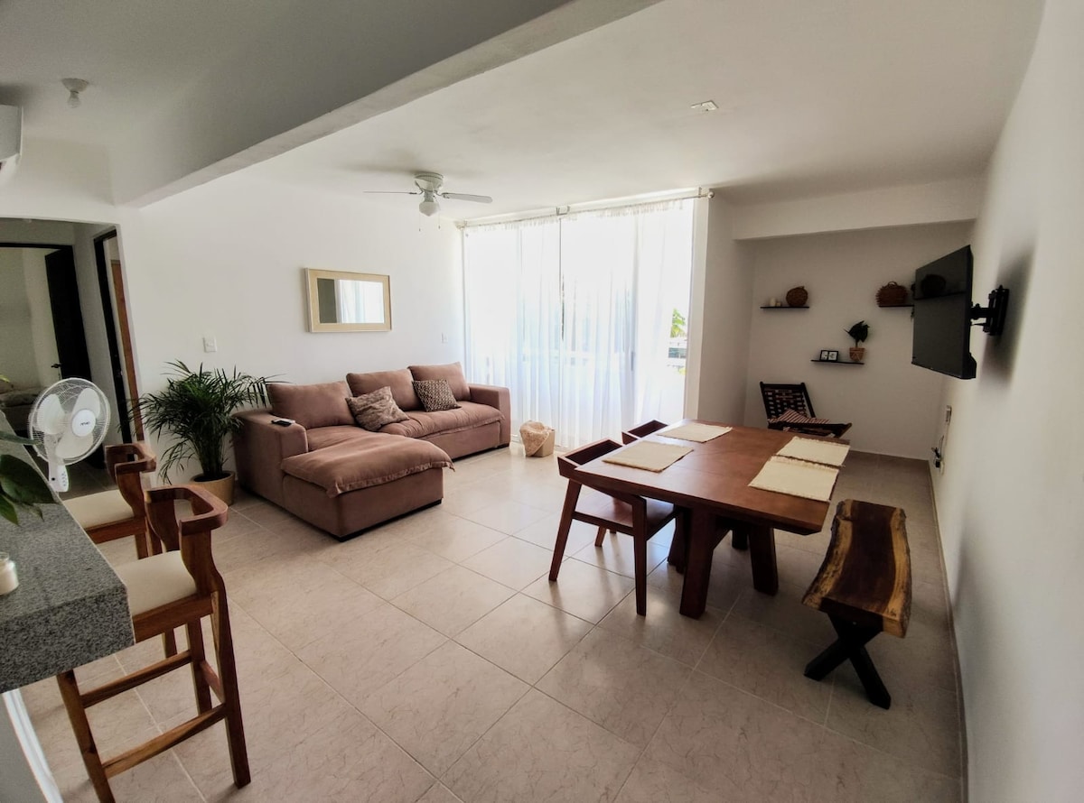 Lyxig lägenhet med tidskriftsdesign gömd i ett lokalt grannskap, till en låg kostnad, med handgjorda möbler och allt du behöver för att vila och njuta av Karibiska havet till fullo. 2 sovrum, utrustat kök, 3 A/C och 3 Smart TV och strandartiklar. Dessutom finns ytterligare kökstjänster, tillgång till en strandklubb, transport till hotellområdet, uthyrning och turer. Det är inte bara en lägenhet, det är en lokal upplevelse av lyx, design, gästfrihet och komfort, utan att betala för mycket.