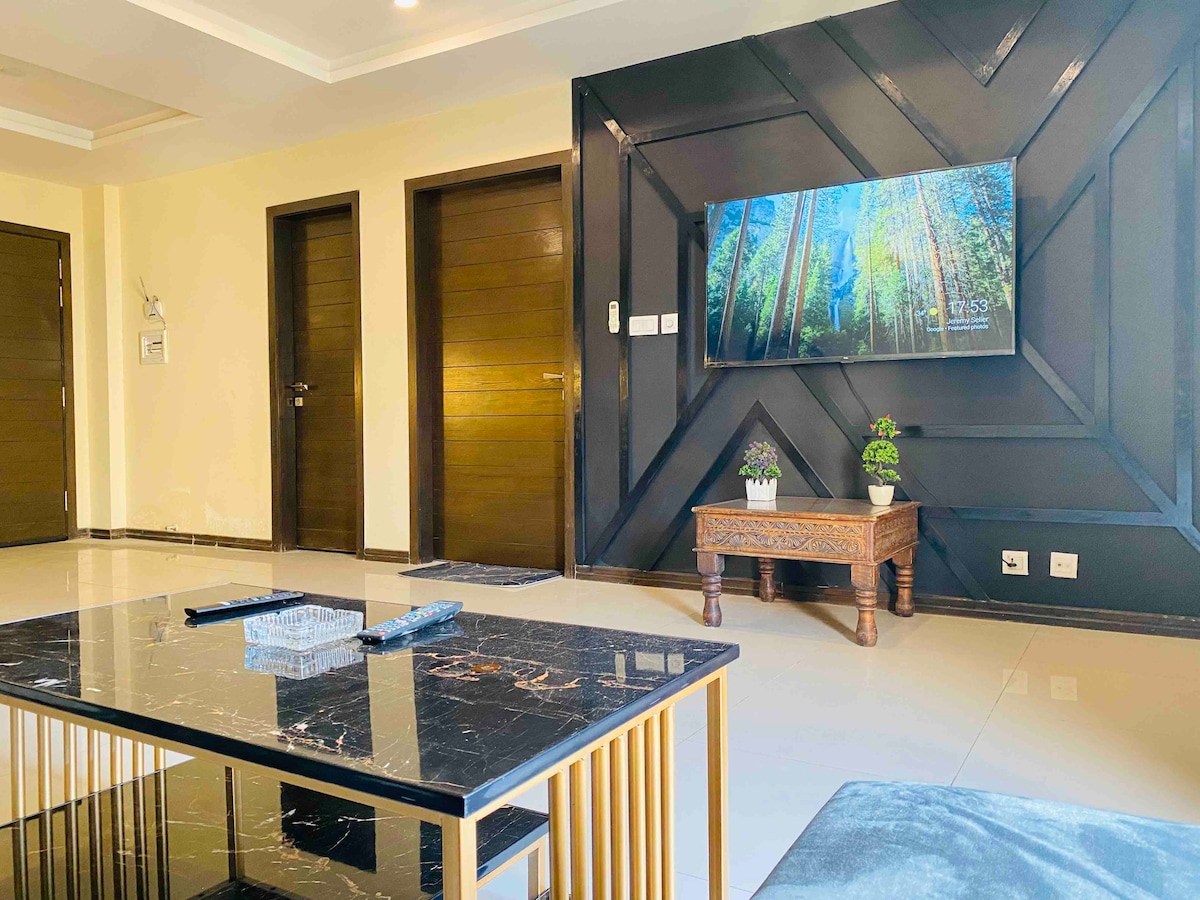 Denna moderna lyxlägenhet ligger i H-13 Islamabad och erbjuder en elegant och bekväm vistelse nära Islamabads flygplats och motorvägen. En perfekt plats för resenärer som vill ha en lugn vistelse med snabb tillgång till Islamabad, flygplatsen och de viktigaste motorvägarna. Gäster har tillgång till gratis parkering inne i byggnaden. Lägenheten erbjuder självincheckning, vilket möjliggör flexibel ankomst när som helst. Ytterligare bekvämligheter inkluderar höghastighets-Wi-Fi, smart-TV-underhållning och luftkonditionering för avkoppling.