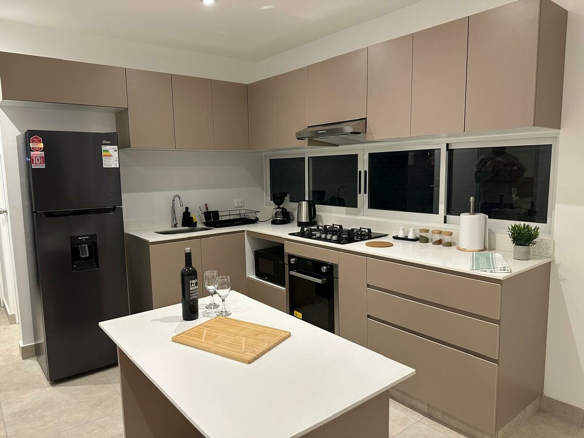 Relájate en esta escapada única y tranquila."¿Buscas un escape exclusivo sin salir de la ciudad? Bienvenido a tu refugio privado en el piso 3 solo para ustedes. Imagina terminar el día con una copa de vino junto a una cascada iluminada, disfrutando de una parrillada bajo las estrellas, un atardecer top y descansando en una suite diseñada para el confort total. Con acceso 100% independiente, este es el lugar donde el diseño moderno se encuentra con la relajación absoluta."