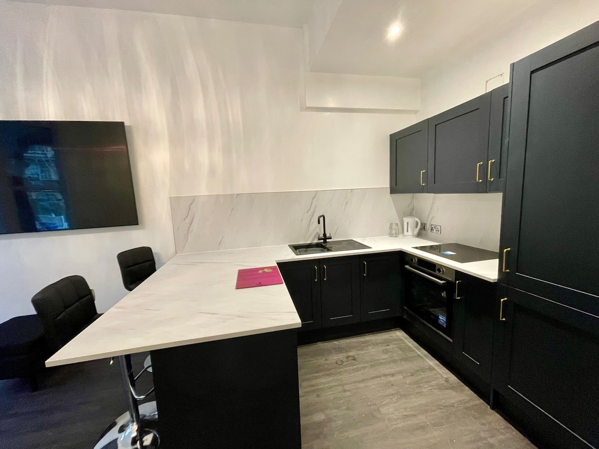 Njut av modern komfort i vår vackert designade, fristående 1-rumslägenhet. Det öppna vardagsrummet har en elegant lounge med två bäddsoffor, ett elegant, fullt utrustat kök och frukostbar Koppla av i det rymliga sovrummet med en plyschig dubbelsäng och ett eget badrum med en lyxig dusch. Med en egen ingång, supersnabbt Wi-Fi, Smart-TV och alla väsentliga bekvämligheter är denna fridfulla tillflyktsort perfekt för ensamresenärer, par eller familjer på upp till 4 personer.