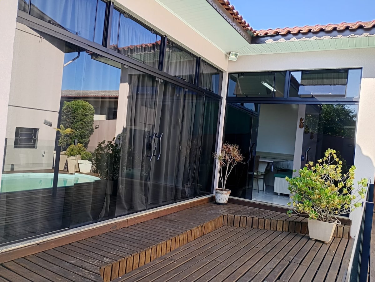 Koppla av med hela familjen och vännerna i detta superbekväma boende, med nya boxsängar och ett mycket trevligt utomhusutrymme. Det har luftkonditionering i två sovrum och en bärbar luftkonditionering. Hus i ett lugnt bostadsområde, nära shopping, apotek, stormarknader och gym, och även med en välutrustad kiosk.