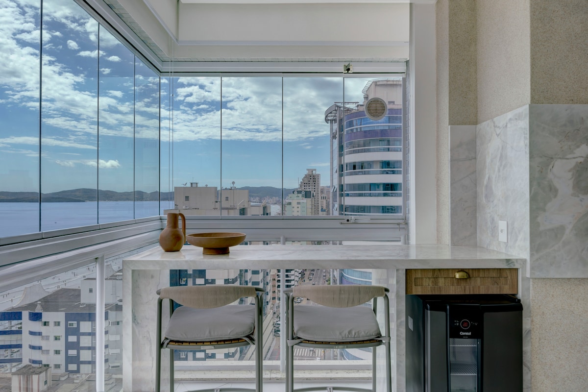 Modern comfort just steps from the sea! Just steps from the beach, this studio was designed for those who value comfort and location. It features a double bed, sofa, Smart TV, air conditioning, an equipped kitchen with integrated dining area, and a charming balcony with city view. The building offers a heated pool and jacuzzi on the rooftop, gym, and game room. Only 220 m from the sea and surrounded by great dining options. Book now and enjoy a complete experience in Meia Praia.