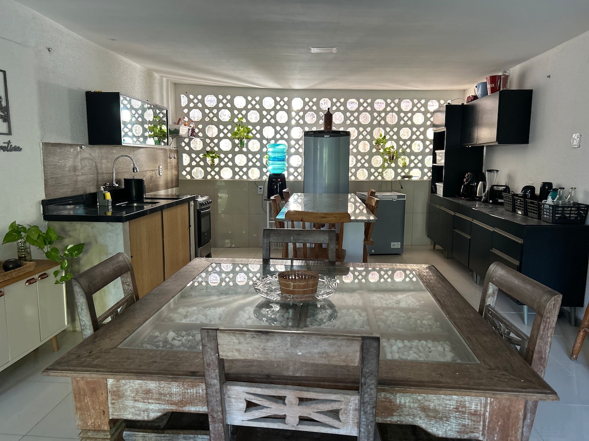 Beläget bara 3 minuters promenad från havet och kitesurfplatserna, kommer du att välkomnas i Casa Boa Onda i en varm och vänlig atmosfär. Kom med din älskade familj eller dina bästa vänner för att upptäcka detta nya hus i Icarai, fullt av överraskningar och bra vibbar. Verkligen ett paradis för kitesurfing, vindsurfing och vingsurfing, kommer detta hus att göra det möjligt för älskare av dessa discipliner att njuta av sig själva från morgon till kväll, genom att bara ta några steg utanför huset.