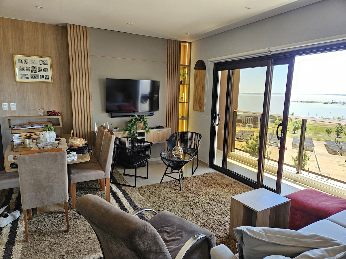 Detta vackra möblerade lägenhetsområde Shopping Costanera Encarnación, balkong med utsikt över floden, har två bekväma rum, ett med eget badrum, möblerat kök 🍽️ och integrerad matsal, vilket skapar en rymlig och modern atmosfär. Det erbjuder också parkering. Det är ett bra tillfälle för dem som letar efter komfort. Extra tjänster: - Wifi -3 SMART-TV - Grunder för matlagning - En elektrisk ugn - Elektrisk kök -Mic % {smart -Lavarropa -Hervidora -Mixtera