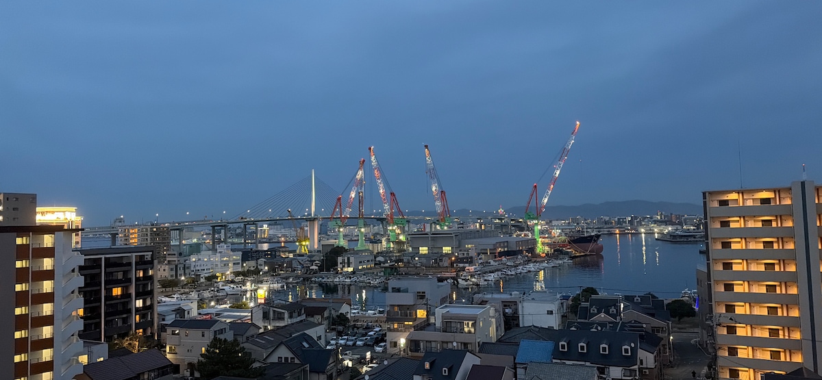 ❽/Framför Hakata Port Tower/2 rum/4 dubbelsängar/7 minuter med buss till Fukuokas livliga stad