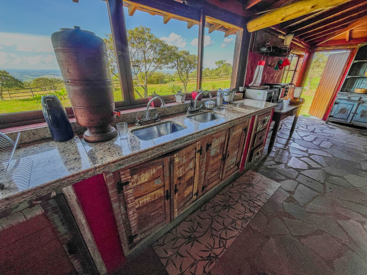 En charmig stuga, gjord av rivningsvirke och med en fin finish mitt i vår Sítio Boa Fé. Det förenar det rustika med elegans och komfort integrerad i naturen. Ett elegant badrum med ett gigantiskt badkar med utsikt över trädgården och solnedgången. En 5 minuters promenad tar dig till Moinho e Salomão-vattenfallet, praktiskt taget längst bak på gården. Utsikt över bergen, men bara 2 km till centrum. Allt är utformat för en lyxig upplevelse och kontakt med naturen.