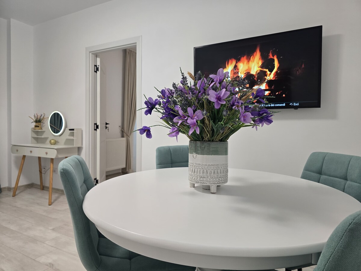 Modern, mysig lägenhet bara 15 minuter från Iași centrum (Palas & Palatul Culturii), beläget i ett lugnt, familjevänligt grannskap med enkel kollektivtrafik. ✨ Perfekt för distansarbete – dedikerat skrivbordsutrymme 🐾 Helt husdjursvänligt – ta med din hund, katt eller hamster! ☕ Gratis Wi-Fi, parkering och kaffe (ja, verkligen!) 🌿 Öppen planlösning med mjuka, lugnande pasteller 🛏️ Bekväm säng, fräscha sängkläder och en madrass av god kvalitet Din mysiga vistelse i Iași börjar här – jag skulle gärna vilja vara din värd!