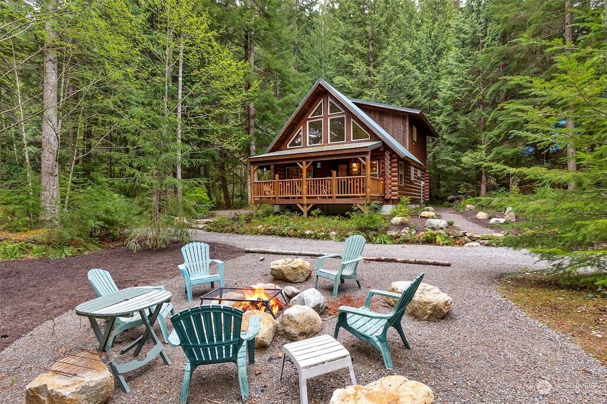 Koppla av på Misty Mountain Haus – en lyxig A-Frame med utomhusbubbelpool, eldstad och fullt utrustat kockkök, perfekt för bergsutflykter året runt. Vi ligger i Timberlane Village, bara 90 natursköna minuter från Seattle och några minuter från Stevens Pass äventyr. Kom och njut av vandring till rostade marshmallows under stjärnorna. Vi ser fram emot att dela denna fristad med dig så att du kan skapa egna minnen. Gigabit Wi-Fi och smart TV | Backup generator | Lofted king size-säng + mysig queen size-säng