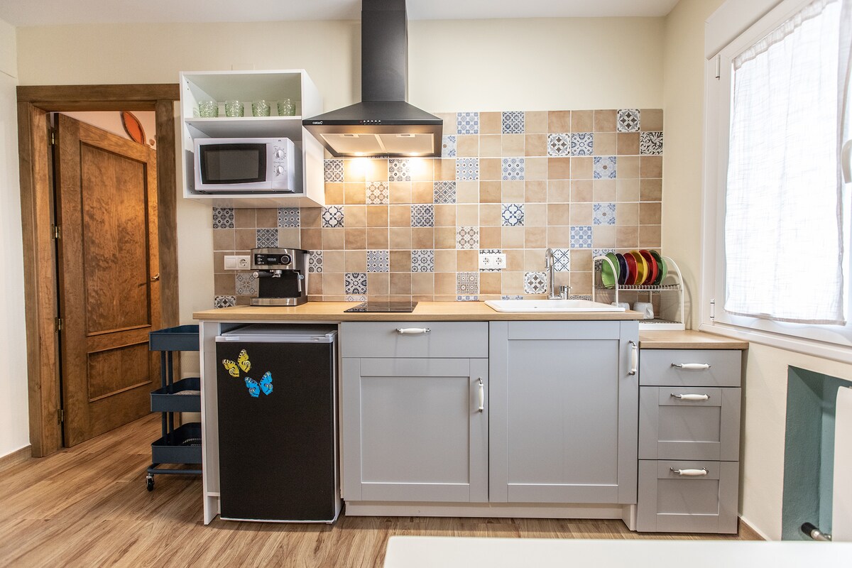 Granero Apartment är en vacker studio som ligger i Molino de Abajo landsbygden lägenhetskomplex. Lägenheten är fullt utrustad (stora köksartiklar, sängkläder, viskoelastiska madrasser, handdukar...), värme, wifi,... har ett badrum, kök. I utomhusområdet finns en stor pool, bredvid vilken vi kan välja att vara i solen eller njuta av skuggan som ger oss en majestätisk noguera, samtidigt som vi lyssnar på ljudet av vattnet som rinner genom diket.