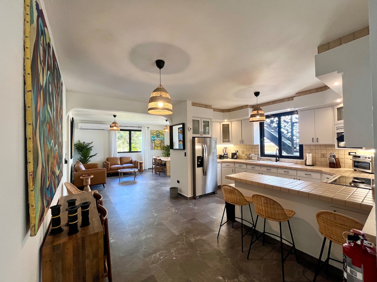 Ett unikt för lugn, avskildhet och komfort i en magnifik lantlig villa på nästan 3 000 fot med utsikt över "Tetas de Cayey", vilket ger en fantastisk utsikt över Karibiska havet och magnifika solnedgångar. Fullt utrustat elegant 4Bdr/3,5 badrum inom ett gated community för en idyllisk tillflyktsort, omgiven av ekologisk skönhet. Enastående frisk luft och temperatur. Nära till staden, utmärkt centralt läge för att utforska Panoramic Route, restauranger i närheten och mer.