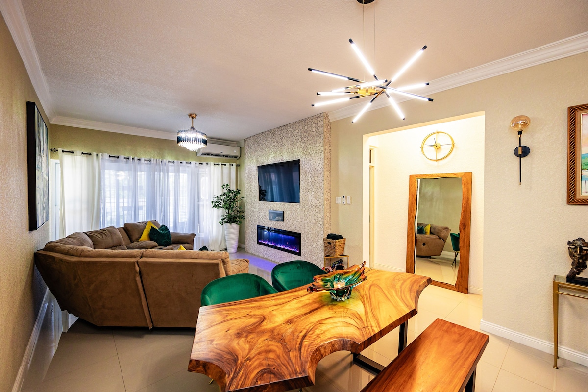 Denna nybyggda lägenhet ligger bara 5 minuter från Half Way Tree & Barbican Center och erbjuder en unik smak av stil och elegans som säkert kommer att tillgodose dina "hem hemifrån behov". Denna pärla med 2 sovrum/2 badrum, bemannad av 24-timmars säkerhet, har en inredning som är modern och bekväm. Det kompletteras ytterligare av dess närhet till affärsnav, inklusive Starbucks, Megamart, Wendy's och den kanadensiska ambassaden. Bekvämligheter inkluderar gym, pool, gratis wifi, kabel och taklounge.