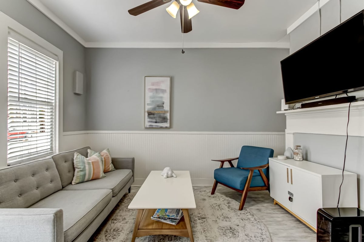 Charmig 1-rumslägenhet i ett vackert, gångvänligt område strax söder om Forsyth Park, och full av eklektiska butiker, matfavoritrestauranger och coola barer. Gratis cyklar för att hjälpa dig att utforska, och den kostnadsfria DOT-transferbussen stannar i närheten. Beläget i Thomas Square/Starland, vi ligger nära Forsyth Park (0,5 mil), Historic District (~1 mil). Bekvämt beläget för äventyr till Tybee Beach. Efter en hektisk dag, återvänd till ditt hem-borta-från-hem för att koppla av i en lugn trädgård bort från allt.