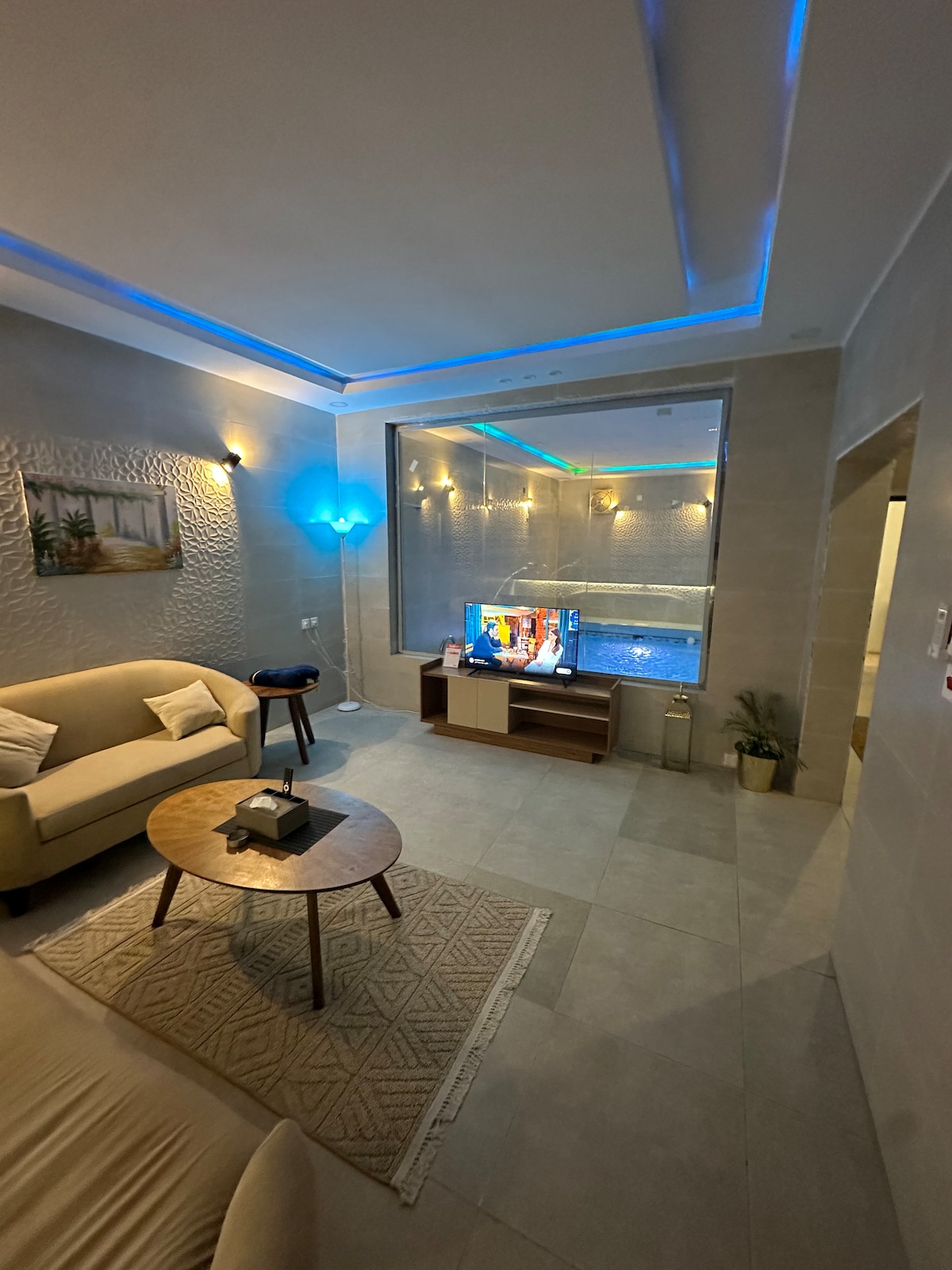 Elegant och lyxigt hotellrum och lounge med perfekta möbler för avkoppling, komfort och lugn med självincheckning Beläget nära turistattraktioner Mycket utvalt läge 15 minuter från flygplatsen Alla boendetjänster är tillgängliga Öppet internet är tillgängligt med 200 Mbps Vittne VIP-prenumeration Netflix-prenumeration Platsdetaljer: Sovrum med dubbelsäng, sidoplats, elegant modernt vardagsrum, stor smart skärm och elegant designat badrum Ett kaffihörn med gratis gästfrihet utformat för att uppfylla alla gästens behov för att få en unik och distinkt upplevelse i Jazan