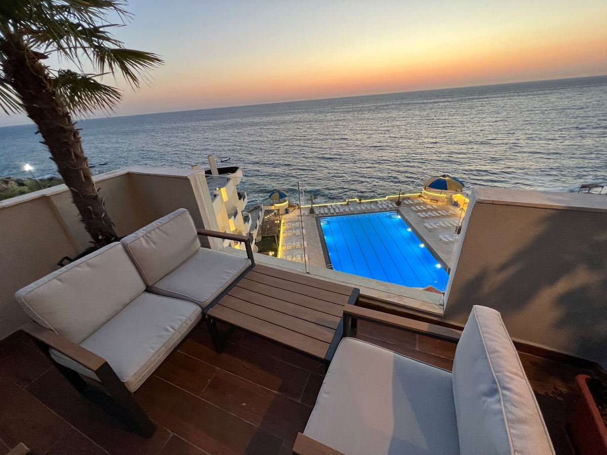 Lugnt och lugnt ställe samtidigt som du har privat tillgång till pool, gym, bastu och tennisbana. Traditionell libanesisk frukost ingår och serveras på gästens lämpliga tid. Parkering tillgänglig vilket ger mycket enkel tillgång till stugan. Havsutsikt genom en oändlig pool, solnedgångar är fantastiska