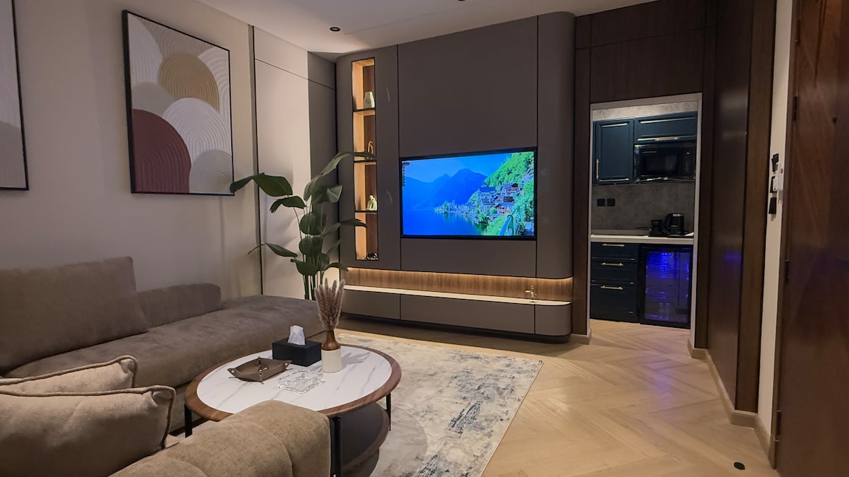 Lyxigt 1BR på King Abdulaziz Road | 75-tums smart-TV