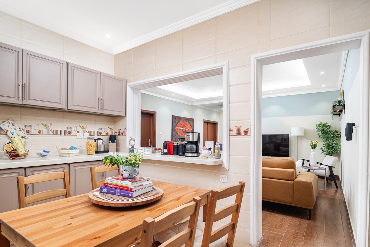Välkommen till vårt mysiga hem i Jeddahs Nahdha-distrikt! Perfekt beläget bara 15 km från flygplatsen, med snabb tillgång till King's Road och Prince Sultan Road - idealiskt för affärer, fritid eller turism. Njut av gratis WiFi, en smart-TV, ett fullt utrustat kök och barnvänliga bekvämligheter - allt i ett varmt, välkomnande hem. Omgiven av lokala kaféer och restauranger finns allt du behöver i närheten. Vi ser fram emot att välkomna dig och är alltid glada att hjälpa till att göra din vistelse bekväm och minnesvärd.