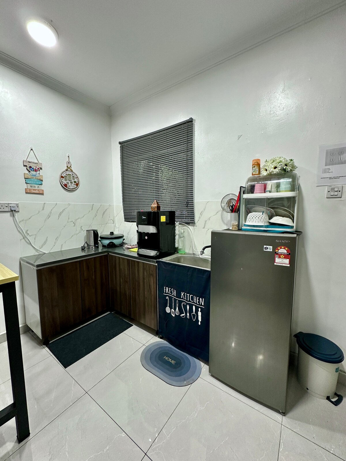 – Modern minimalistisk design - Rymligt 1000 kvadratfot. - Fullt möblerat - Fullt luftkonditionering och takfläkt - 2 sovrum och 2 toaletter - 2 hopfällbara madrasser - Extra filt och kudde - Höghastighets-WiFi och Netflix - Stor Smart-TV - Handduk tillhandahålls - Telekung & Sejadah tillhandahålls - Balkong för kaffe2 med vacker miniträdgård. - 2 parkeringsplatser gratis - Säkerhet dygnet runt med bevakning - Mitt i hjärtat av Eco Sanctuary - Nära till köpcentra, närbutiker, bensinstationer och olika lokala restauranger.