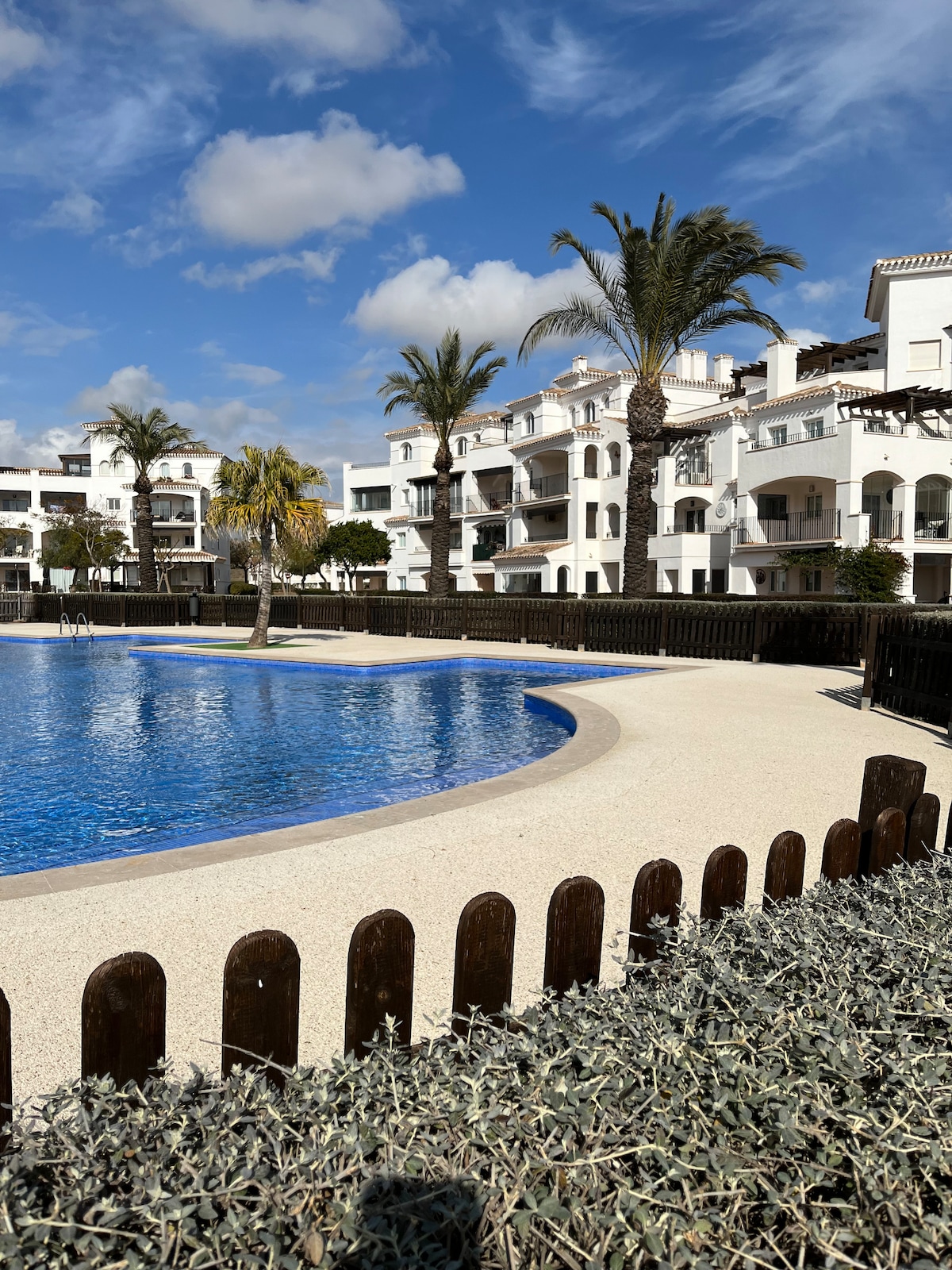 Njut av detta exklusiva hus i Hacienda Riquelme Golf, en nedre mark med en privat terrass och direkt tillgång till poolen. Koppla av i en unik miljö, med tillgång till 18-håls golfbana, gym, skjutbana, restaurang, cafeteria och stormarknad. Allt du behöver för en perfekt semester, med komfort och lyx till hands. Perfekt för golfare, sportälskare och de som vill koppla av i en naturlig och exklusiv miljö. Vi väntar på dig!