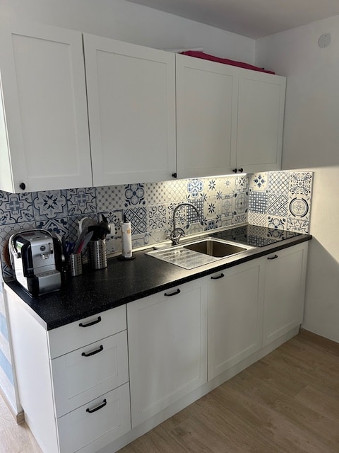 Bekväm och funktionell lägenhet, perfekt för familjer och par. Fullt utrustat kök med ugn, kylskåp, spishäll och kaffemaskin. Rymliga och välskötta rum; badrum med stor dusch och nödvändiga produkter. Inhägnad privat innergård, perfekt för barn och husdjur, möblerad för avkoppling utomhus. Gratis Wi-Fi, luftkonditionering/värme och privat parkering finns. En mysig miljö där du kan känna dig som hemma.