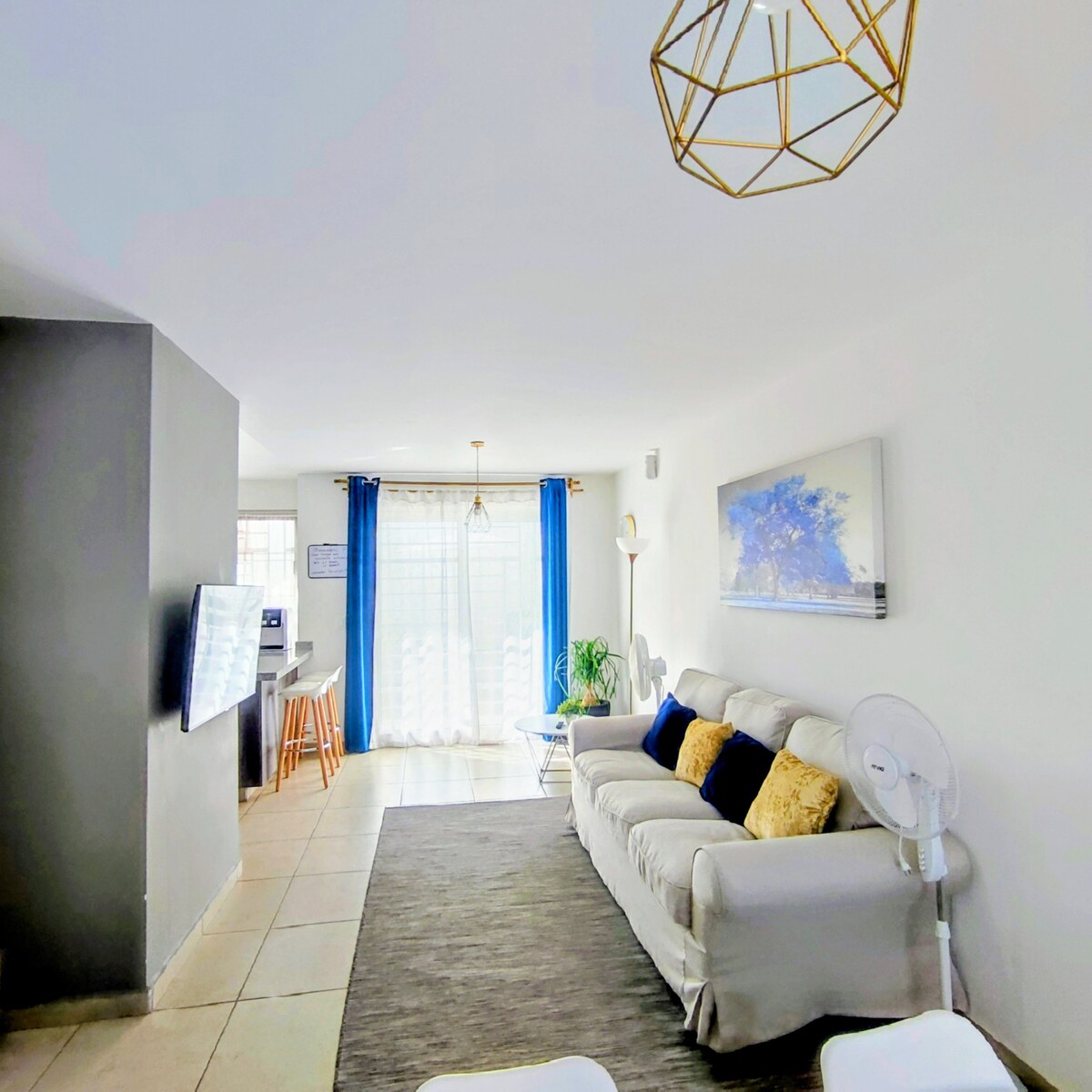Rymliga utrymmen med bra naturligt ljus, säkerhet och renlighet, 205 m2 till ditt förfogande på huvudgatan 5 minuter från mässområdet med allt till hands för din komfort oavsett om du är ensam, med familj eller arbete. Perfekt för vila, meditation, avkoppling eller arbete. (Gäst från och med tredje personen som bor i huset måste vara registrerad, extra gäst 290 dollar). Du behöver inga extra objekt, du har allt här. Rymligt sovrum med dubbelsäng och 2 indiv. med eget badrum.