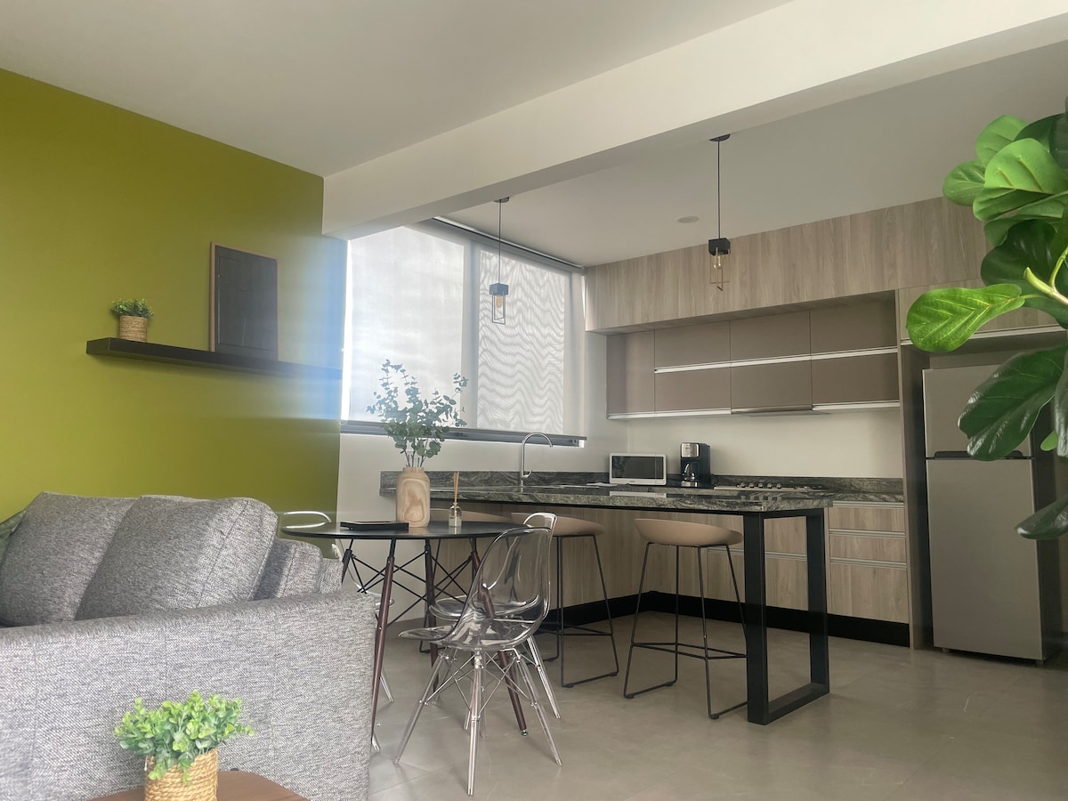 Kom och njut av din vistelse i den vackra staden Aguascalientes med oss. Mycket trevlig lägenhet, centralt med modern inredning, utrymmet har ett kök, matsal, 2 ganska bekväma,rymliga och mysiga sovrum, 2 kompletta badrum, privat garage för 1 bil.