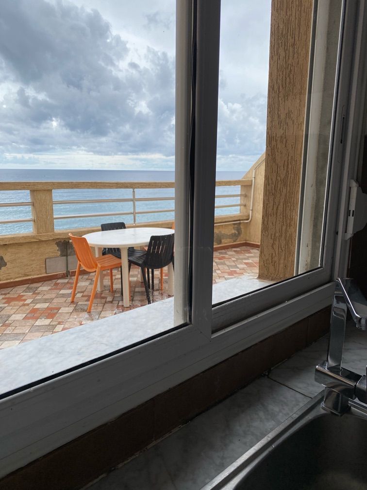 Studio 40 meter till stranden - på bottenvåningen i ett nytt modernt och fullt utrustat vandrarhem ( luftkonditionerat). - Ta ett öppet kök med alla vitvaror, redskap, tallrikar som behövs. - En dubbelsäng mycket bekväm. - tillgång till en solig terrass med havsutsikt finns WiFi tillgängligt. - säker parkering. - snabbmat finns med gratis leverans till ( lägenhet, strand och terrass). - Gratis paraplyer+ stolar. - Extra utomhusdusch