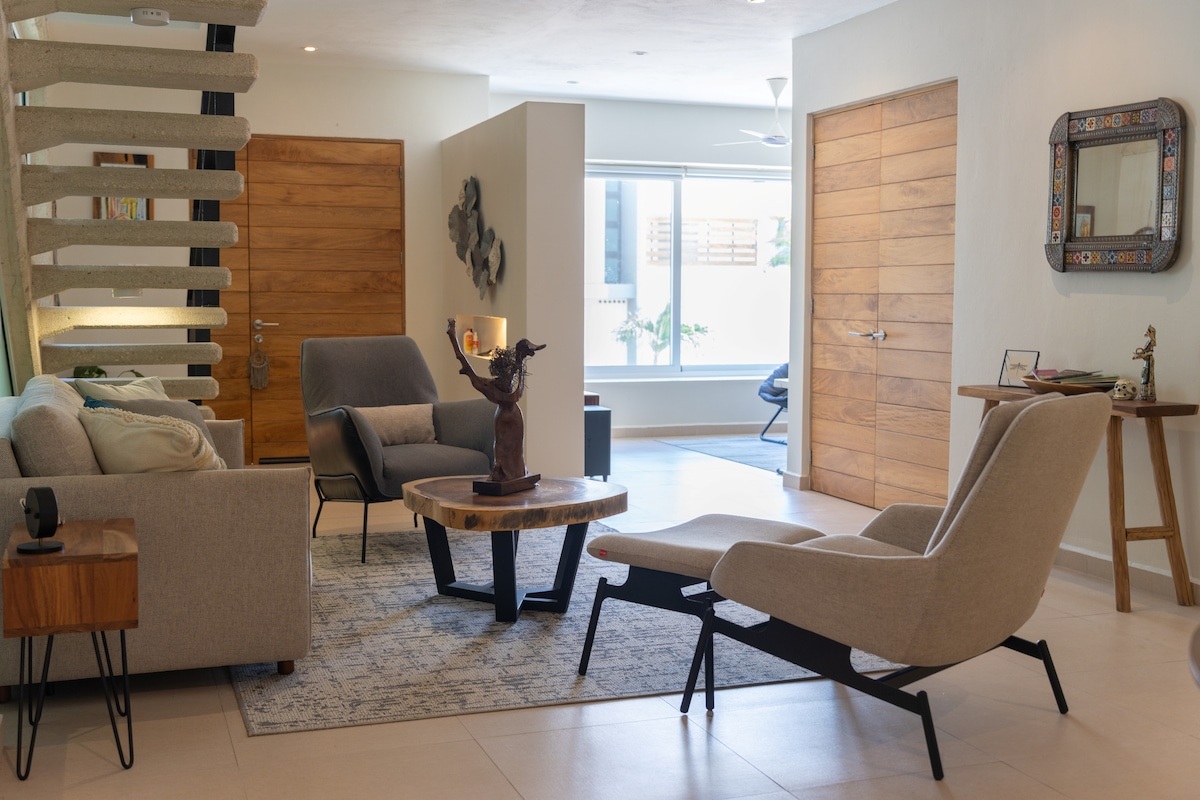 Escape to our tropical paradise in Puerto Morelos, Mexico! Our family vacation home is designed for comfort and relaxation, blending beachy vibes, local art, and lush plants. Enjoy comfort furniture and artwork from local artists! Our quiet neighborhood provides a peaceful retreat, with a jungle area across the street featuring birds & parrots that visit daily. We're just 6 minutes from the beach, with easy Uber ride ($3 USD). Relax, unwind, and make memories in our little slice of heaven!