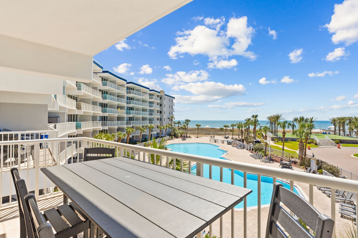 Direkt utsikt över Gulf Front-Lazy River-Pool-Big Balcony