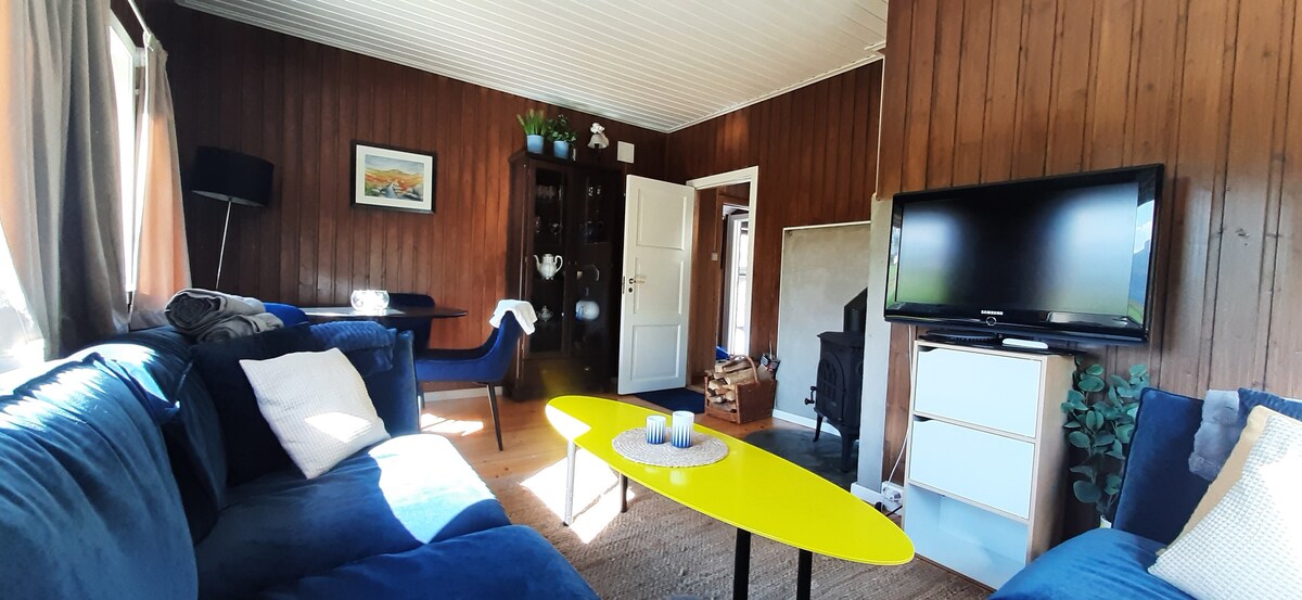 Stuga på ca. 60 kvadratmeter med 2 sovrum. Eget kök med porslin. Stugan ligger i ett lugnt område med 3 andra stugor. Stugan ligger på en privat väg och området är lugnt och fridfullt. Det finns grill vid stugan för fina kvällar med solnedgång i fjorden. Det finns en öppen spis i vardagsrummet och den kommer med ved som kan användas om det blir kallt. Det finns även elektrisk uppvärmning i alla rum. Sänglinne och städning ingår i priset.