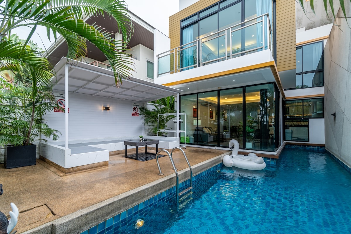Lyxig poolvilla betygsatt som gästfavorit perfekt för familjer, grupper av vänner eller festresenärer som söker kul. Ensuite badrum. Egen pool för lata eftermiddagar. Schampo och duschgel, handdukar tillhandahålls. Grill, karaoke & biljardbord. Luftkonditionering inomhus. Denna villa ligger 6 km bilväg till Pattaya Beach och Walking Street. GRAB eller BOLT app bilar tillgängliga dygnet runt, även kl. 04:00-06:00 (efter festtimmar). Vi kommer att dela ställen för måltider, drycker, turistiska platser, kvällsevenemang och dolda pärlor.