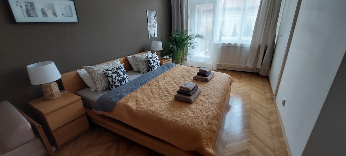 Kom och bo i vår autentiska lägenhet i Prag som ligger på andra våningen med balkong och fantastisk utsikt! Njut av morgonkaffe eller te medan du lyssnar på klockorna och fåglarna. I slutet av vår gata ligger Gamla torget med den populära astronomiska klockan som kallas "Orloj"! Grannskapet är omgivet av matställen och de viktigaste sevärdheterna ligger på gångavstånd! Vi tillhandahåller inte ens lägenheten, men också användbara guider som vi skapade för dig. Du kommer aldrig att gå vilse eller bli hungrig.