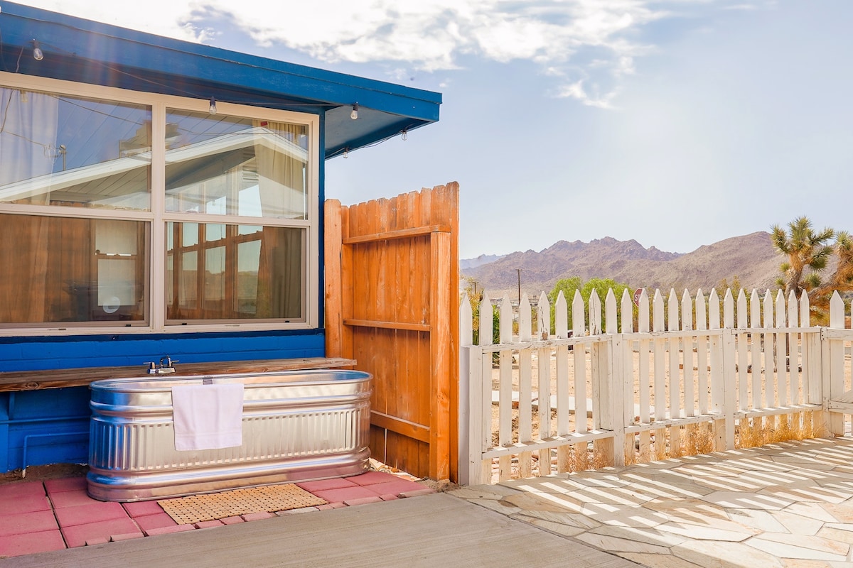 Kom och koppla av i denna ljusa, boho-inspirerade 2 sovrum, 1 badrum med gratis laddare för elfordon, cowboy plunge pool (öppen säsongsmässigt) och privat bakgård som ligger mindre än 5 minuter från Joshua Tree National Park. Oavsett om du gillar bouldering, vandring eller bara vill luta dig tillbaka, erbjuder Casa Blanca gäster den unika upplevelsen av lugn ensamhet inom gångavstånd från staden Joshua Tree.