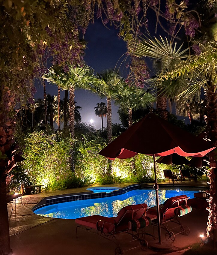 Inbäddat i Coachella Valley. Där du kan komma bort från storstadens jäkt och stress. En plats där du antingen kan spela golf på morgonen eller ta en tur till Joshua Tree för en vandring eller se naturens skönhet. På kvällen kan du koppla av på den lugna uteplatsen eller ta en tur till kasinot som ligger 5 minuter bort (Augustine, Spotlight 29 och Fantasy) eller njuta av underhållning på den berömda Empire Polo Club där den världskända Coachella och Stagecoach Music Festival äger rum bara 2 miles bort.