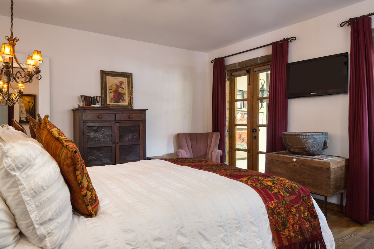 Egen ingång Casita utan extra / dold städavgift. Inklusive ett sovrum med Queen size "Serta Perfect Sleeper" säng, 43" TV, minikylskåp, mikrovågsugn och Kuerig kaffebryggare. Vägg AC enhet och takfläkt för gästkomfort. Eget badrum med dusch. En garderob och byrå. Inga husdjur tillåtna. Jag har varit en Airbnb-superhost i över 11 år och gör mitt bästa för att se till att casita är ren och bekväm för alla mina gäster. Välkommen hem till mig och din egen privata casita!