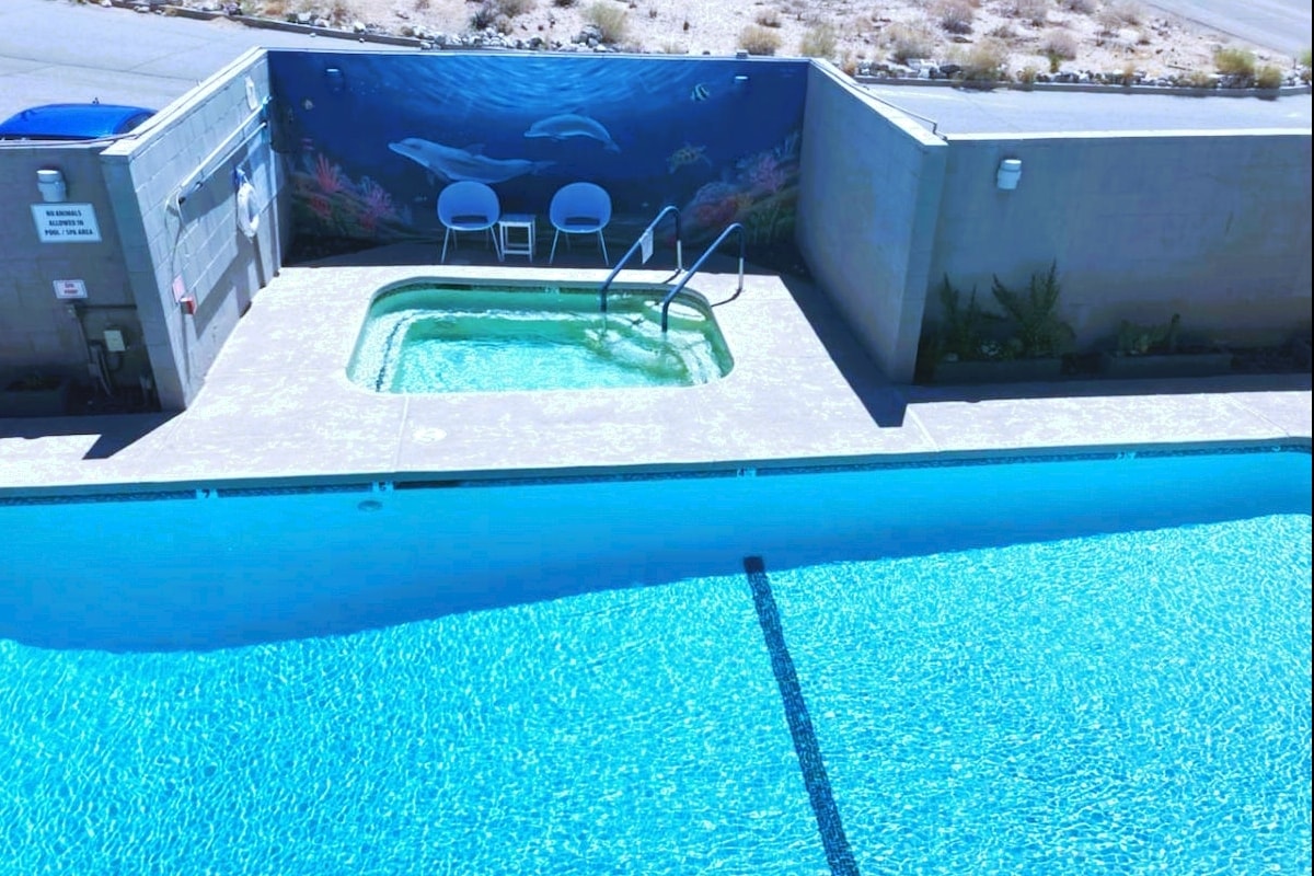 Desert Star Oasis med pool bubbelpool och utsikt över bergen