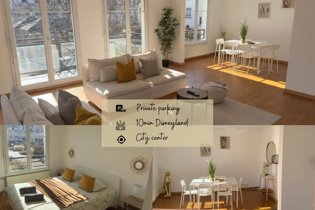 Välkommen till "La Terrasse" Njut av en ljus och elegant lägenhet med en privat takterrass, med en mysig lounge och en bioklimatisk pergola. Bara 15 minuter från Disneyland Paris och 12 minuters promenad från RER A (eller 3 minuter med buss, med en hållplats precis vid gatan), kommer du att vara perfekt beläget mellan Paris och Disneyland. Oavsett om du är på familjesemester, affärsresa eller romantisk resa kombinerar denna lägenhet lugn, komfort och elegans för en verkligt unik vistelse.