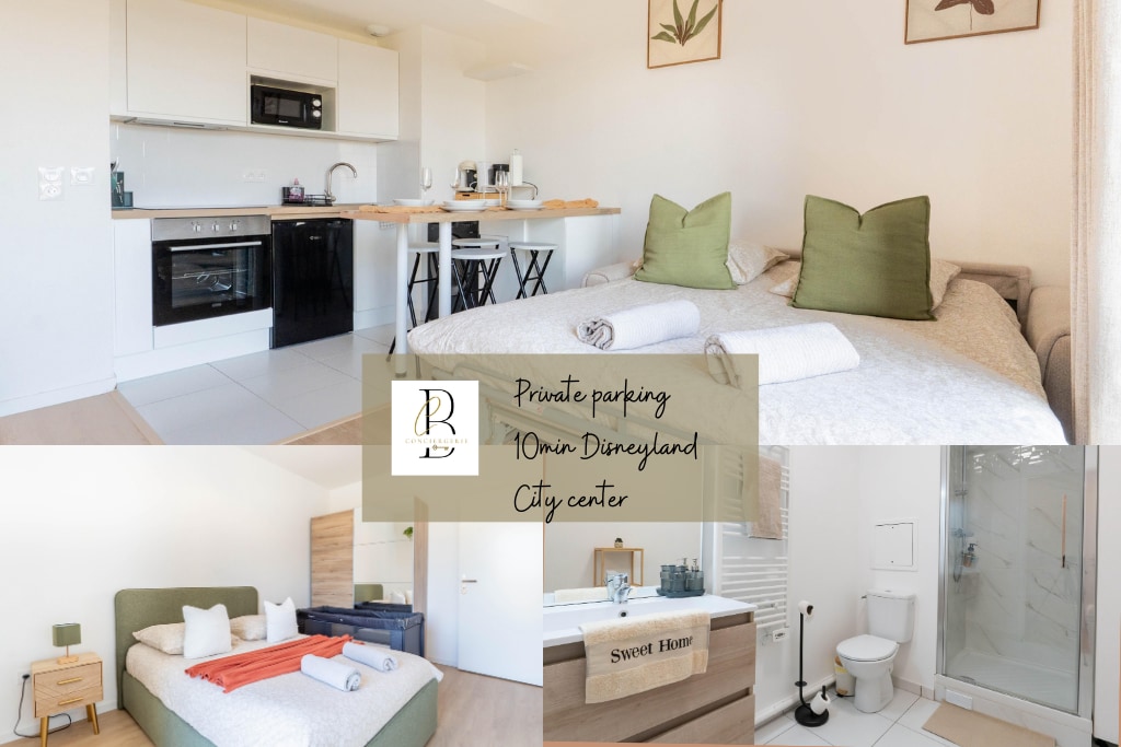 🏰 Maison Design 4 Pers.: 10 min Disney och 30 min Paris. Din perfekta vistelse! Fullt utrustat hus med föräldrasvit och privat trädgård. Nära Disney (10 min) och Paris (direkt RER A). Gratis parkering och Disney-buss 3 minuter bort. Valfria premiumtjänster 🛎️: Frukost i sängen, biluthyrning, organisation av evenemang (födelsedagar, etc.). Hör av dig med all information! Toppen! Vi ser fram emot att ha dig boende hos oss! ✨