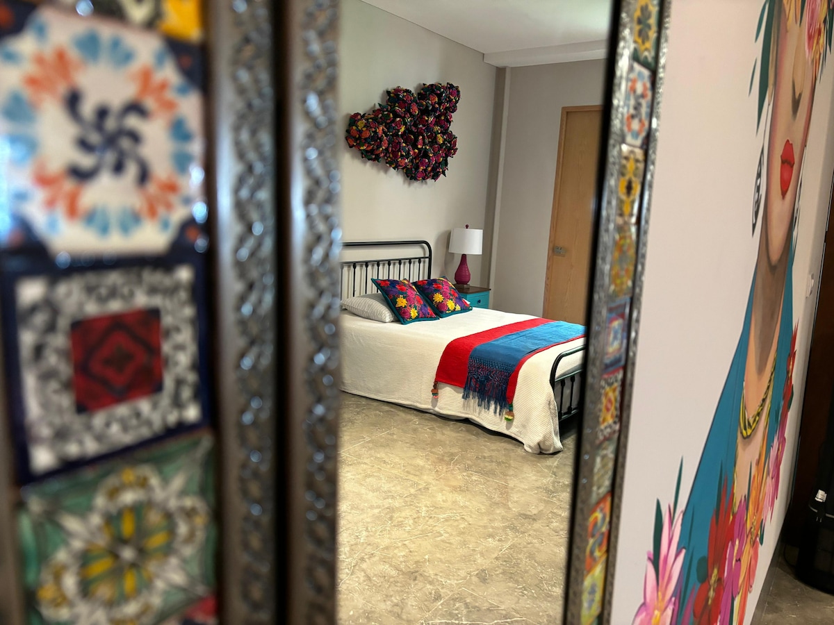 Frida Kahlo themed loft! Enjoy a stylish experience at this centrally located accommodation. Hana is a building dedicated to rentals on Airbnb The Loft has a kitchenette, kitchen utensils, full bathroom, dining room and armchairs, king size bed and a terrace. We have 24-hour security, Roof garden with Co Work, lounge rooms and elevator.