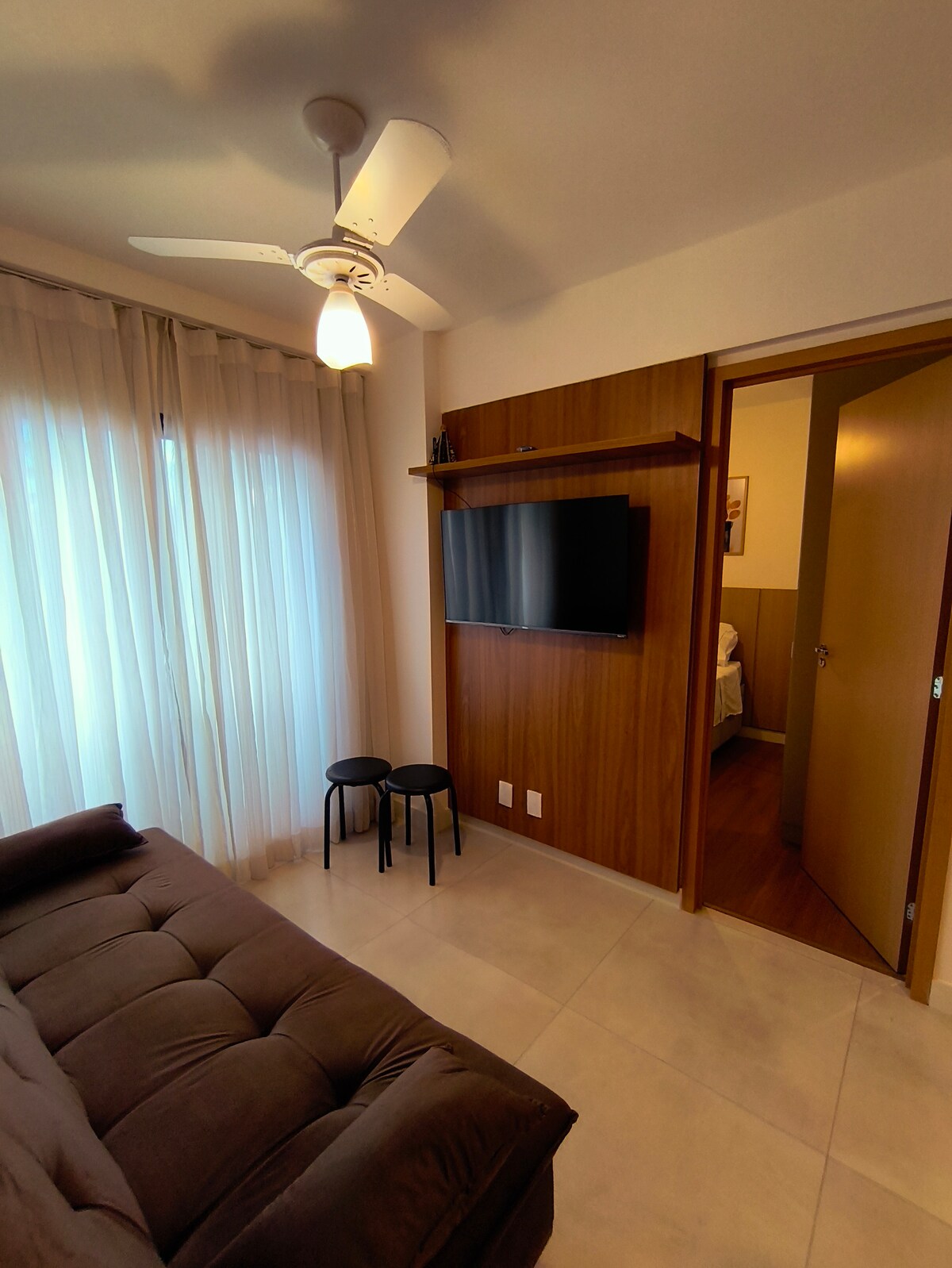 Ny studiolägenhet med alla nya möbler och planerad för att ge maximal komfort för våra gäster. Mycket bra läge med allt i närheten, mitt på Av Itamar Franco nästan i hörnet av Av. Br. Rio Branco i hjärtat av staden! Perfekt för ditt hemmakontor i kombination med fritid! Med ett komplett fritidsområde med pool, gym, gourmetområde, coworking, barnområde och tvättstuga. Njut av en unik upplevelse i denna väl belägna och kompletta studio! Med komplett kök!