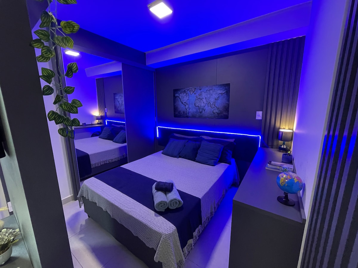 Ny studiolägenhet med alla nya möbler och välplanerad för att ge maximal komfort för våra gäster. Hög våning, mycket bra läge med allt i närheten, mitt på Av Itamar Franco, 915, nästan i hörnet av Av. Br. Rio Branco i hjärtat av staden! Perfekt för ditt hemmakontor i kombination med fritid! Med ett komplett fritidsområde med pool, gym, gourmetområde, coworking, barnområde och tvättstuga. Njut av en unik upplevelse i denna väl belägna studio med luftkonditionering och fritidsaktiviteter!