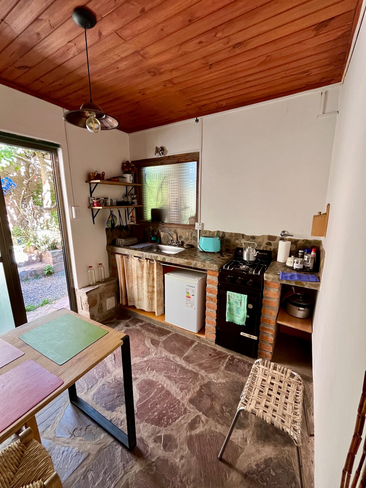 Privat och funktionellt utrymme i Tilcara. Den har ett och ett halvt rum: ett stort sovrum med två sängar, ett bord, en fåtölj, ett minikylskåp, en mikrovågsugn och en kaffebryggare; och ett litet sovrum med en säng. Privat badrum med tillgång från sovrummet. Bakgård och extra kök tvärs över uteplatsen. Terrass med utsikt över trädgården (delad användning) och utrymme för bil eller motorcykel. 📌 Eftersom det är ett område med smutsiga gator ombeds det att hålla dörrarna stängda.