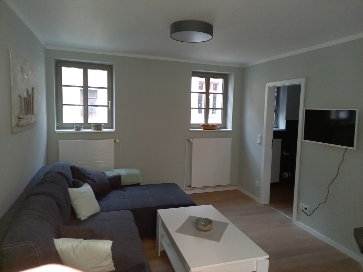 Liten, kärleksfullt renoverad lägenhet (ca 38 m²) mitt i Wismars stadskärna och ändå i ett lugnt läge. Marknadstorget, hamnen, järnvägsstationen, busstationen, busstationen och stora parkeringsplatser ligger inom gångavstånd på bara några minuter (3 till 6 minuter). Boendet: ca 38 m², lämplig för 2 (max. 3 personer - efter överenskommelse), Sängen är 200 x 200 cm, soffan är utdragbar, Cykelparkering finns på gården, balkong mot bakgården, korttidsparkering möjlig framför huset.