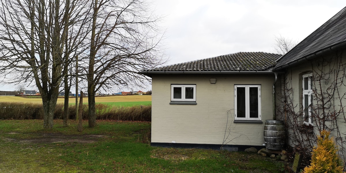 Ønsker i fred og ro, så skal i booke denne lejlighed. Nedlagt landbrug, tilbygget nyere lejlighed, Lys, rummelig, velindrettet lejlighed, 85 km2, i stueplan. Stor terrasse. Rolige omgivelser. 1 km til offentlig transport, 4 km til badestrande, skov og indkøb, 7 km til Haderslev by. Tæt på "Camino Haderslev Næs"