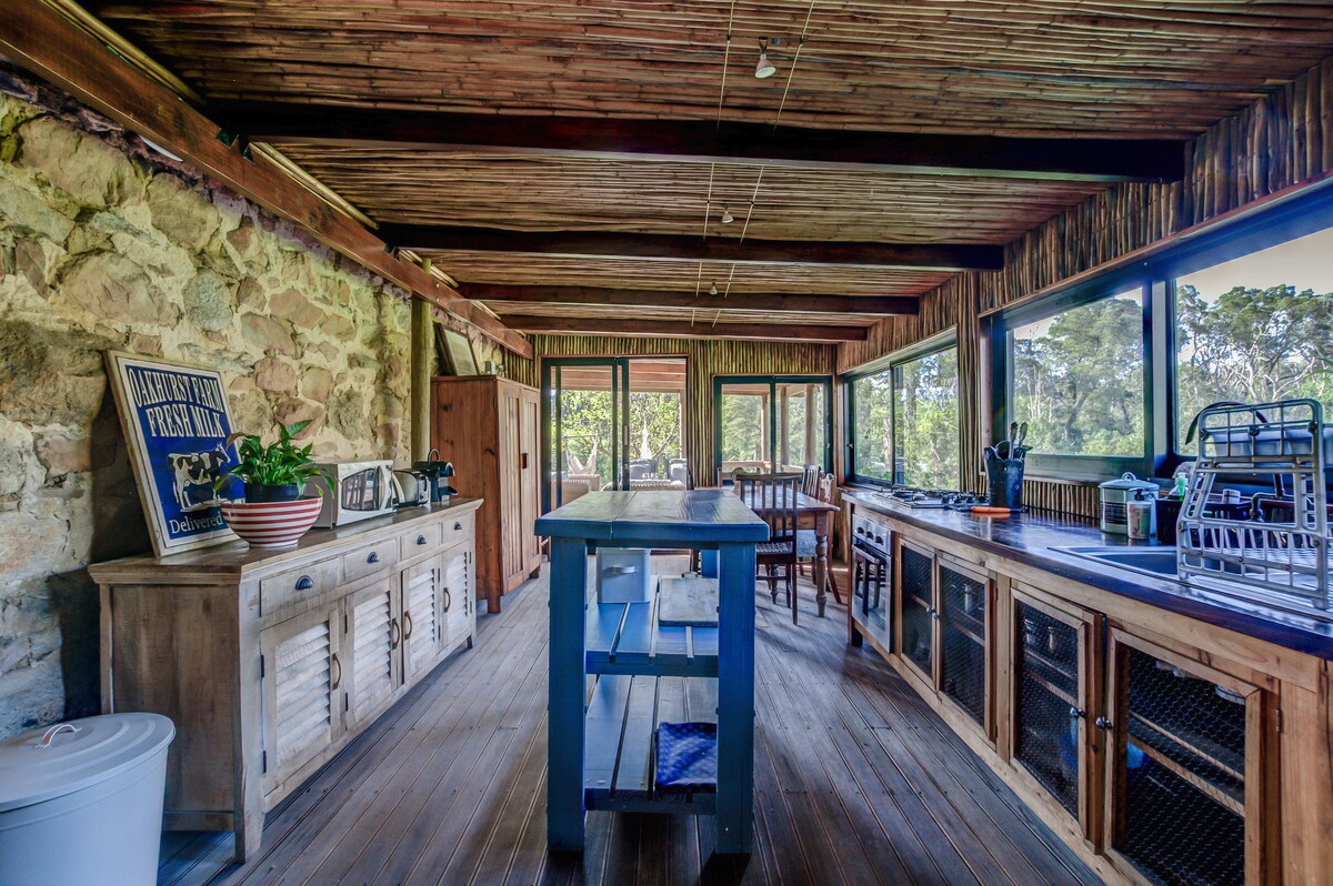 Rustik charm i hjärtat av vildmarken 3 km från vildmarken. En mysig skogstuga som rymmer totalt 6, 2-4 vuxna gäster samt 2 barn eller vuxna på loftet. Ett tredje sovrum med eget badrum nås via en trappa nedanför stugan om fler än 4 vuxna gäster bokar. Denna vackra trästuga inbäddad bland trädtopparna är fridfull och privat. Mysiga vardagsrum med litet kök i öppen planlösning och privat altan med utsikt över havet och skogen. Gemensam stenpool och grillplats på gården.