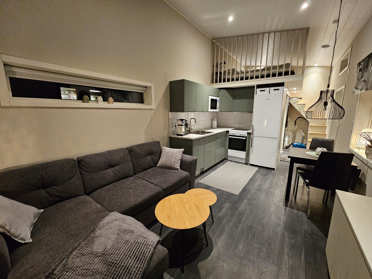 Welcome to your home away from home and to this cozy and fun 70m2 apartment on the second floor of our house. Enjoy 2 comfortable bedrooms (sleeps 6 total: 4 x single, 1 x double), an open kitchen/living area, and a modern shower. The apartment also has a large balcony, ideal for northern lights gazing or summer relaxation! Bedlinen, towels, and free parking are included. Perfect for couples, families and groups seeking a comfortable, prime-location for your arctic adventures.
