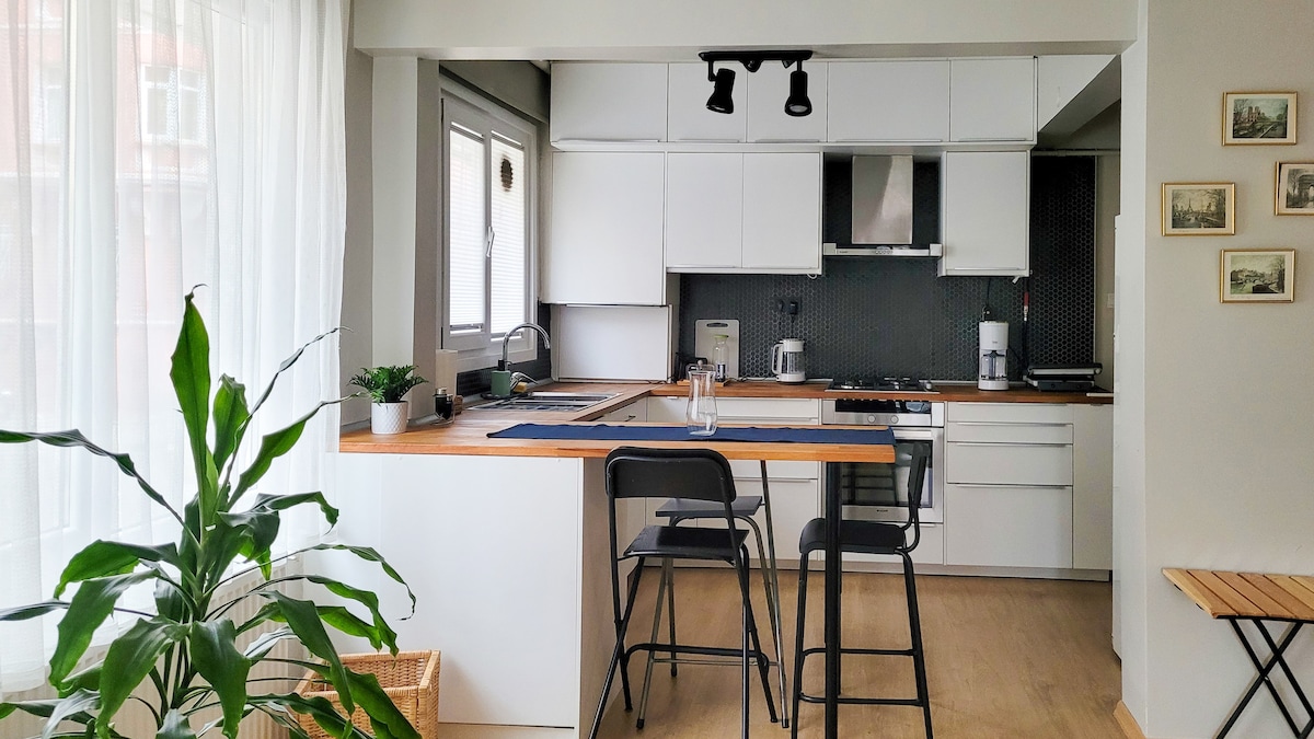 Modern flat in the heart of Moda, Kadıköy, with quick access to metro, ferry, and public transport. Fine dining, shops, and entertainment are within walking distance. Located on the first floor with high ceilings, offering a spacious feel. Fully equipped with high-speed internet (1000 Mbps), dishwasher, washing machine, fridge, Smart TV, vacuum, iron, coffee machine, and kitchen essentials to make you feel at home.